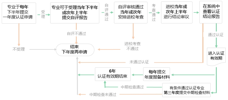1)对于认证结论为“通过认证,有效期6年(有条件)”的,专业应每年向相应的专业类认证委员会以及秘书处提交改进报告,汇报改进情况和专业进展情况。