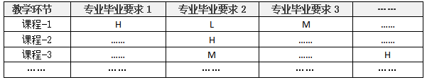 注:H代表教学环节对毕业要求高支撑,M代表教学环节对毕业要求中支撑,L代表教学环节对毕业要求低支撑。